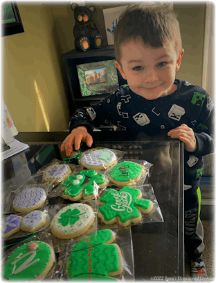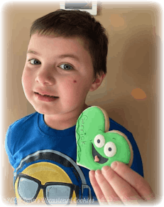 "The cookies arrived! They look awesome, thank you so much. As you can see a few cracks but the design and detail are so beautiful. My grandson Duke couldn't wait to dive in!"