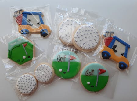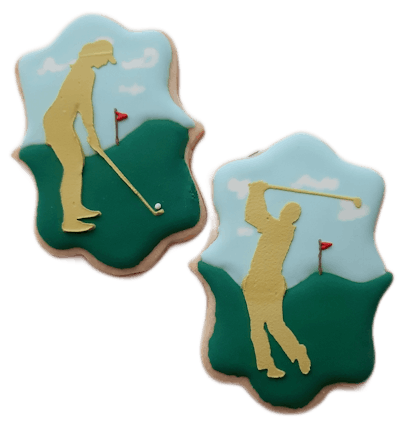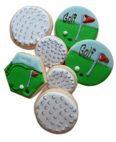 Uniquely designed golf theme cookies; A great way to celebrate birthday's, Dad's Day or other special events with their favorite sport... Golf! Enjoy these delicious sugar cookies decorated in royal icing with your golf friends, teams, groups or give as gifts.