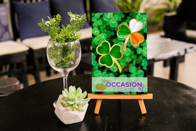 Your cookie box will include 2 large Shamrocks, Pot of Gold cookie, smaller nibbler shamrocks and rounds uniquely designed sugar cookies. Heat sealed and packaged for freshness.